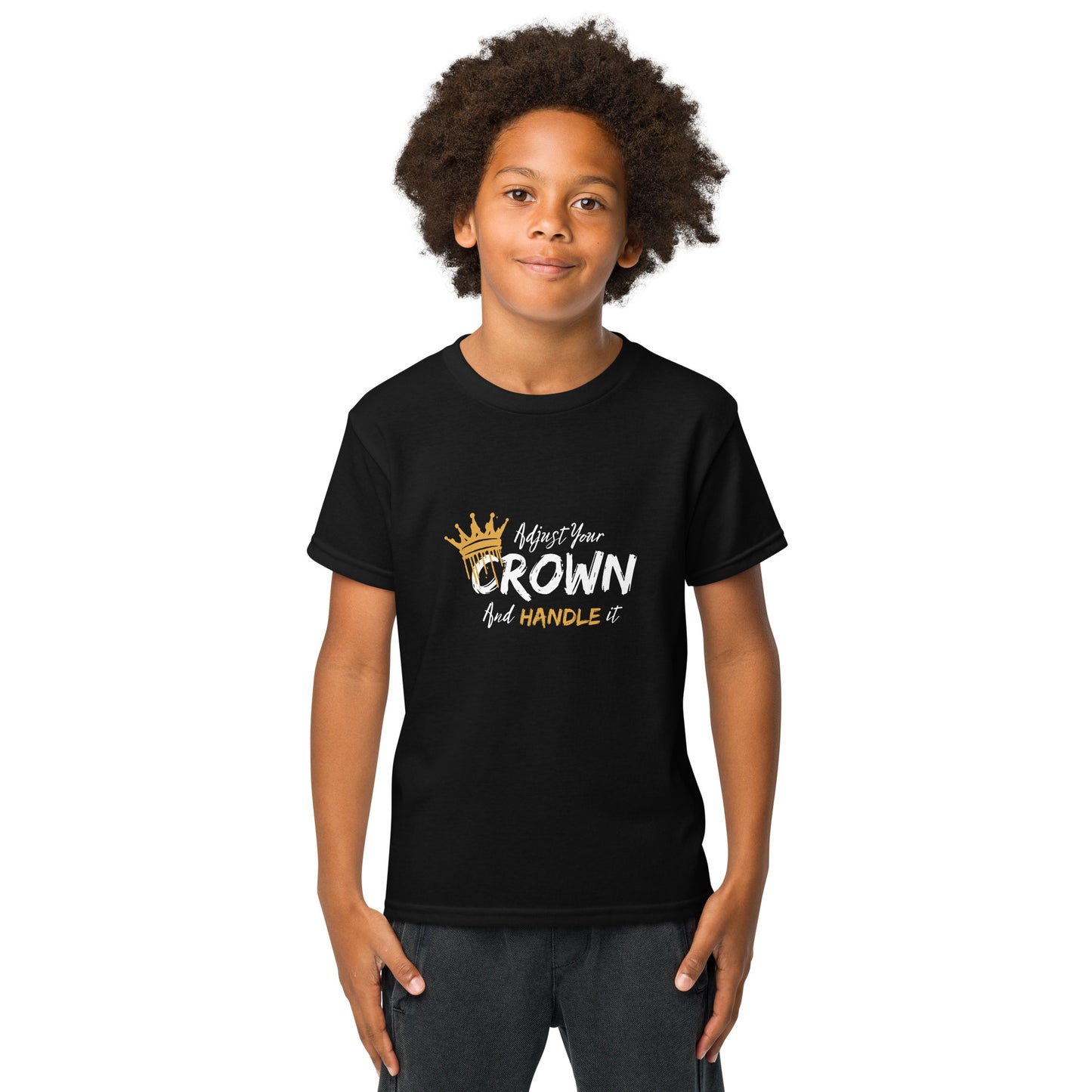 Adjust Your Crown & Handle It T-Shirt – Inspire confidence and strength with this empowering tee. Designed for comfort and performance, this moisture-wicking T-shirt keeps kids cool and ready to take on the day. Its modern fit and high-performance fabric make it the perfect choice for active lifestyles.