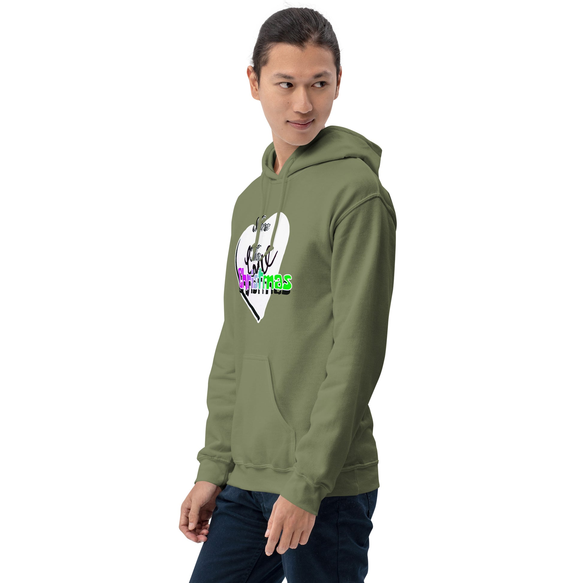 Celebrate the season with heartfelt warmth in the Christmas Love Hoodie—a cozy staple designed to spread cheer. The radiant phrase “Share the Christmas Love” is elegantly emblazoned on soft fleece with accents like holly sprigs, starbursts, or candy cane stripes for added festive flair.