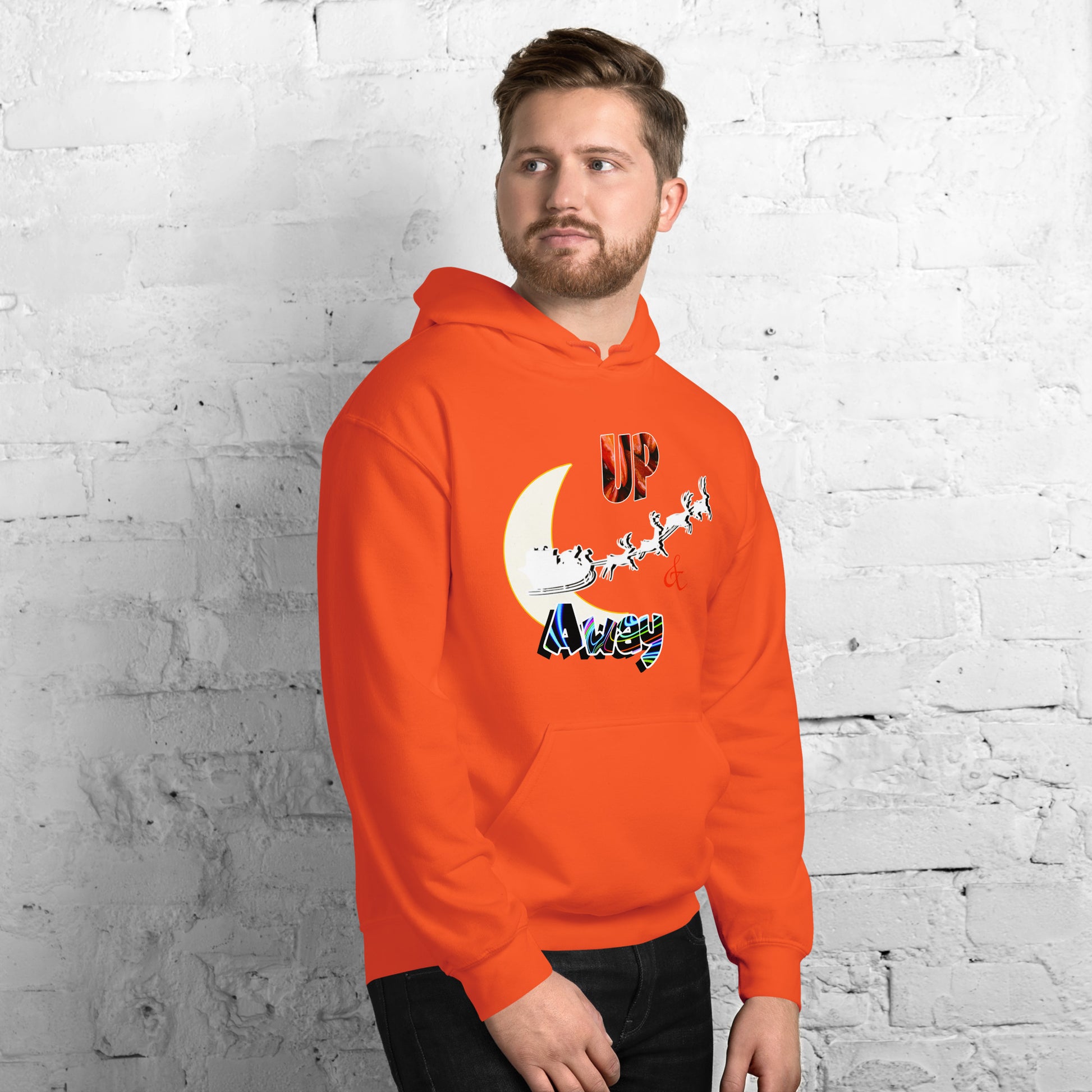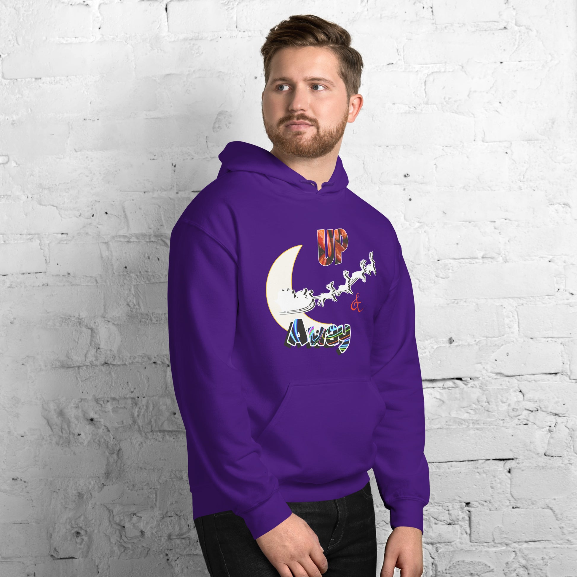 Soar into the festive season with the Up & Away Hoodie, where winter whimsy meets holiday magic. The design features the phrase “Up & Away” in dreamy typography, surrounded by stylized elements like snow-dusted hot air balloons, festive ornaments, or trailing star particles, all lifting off into the holiday sky.