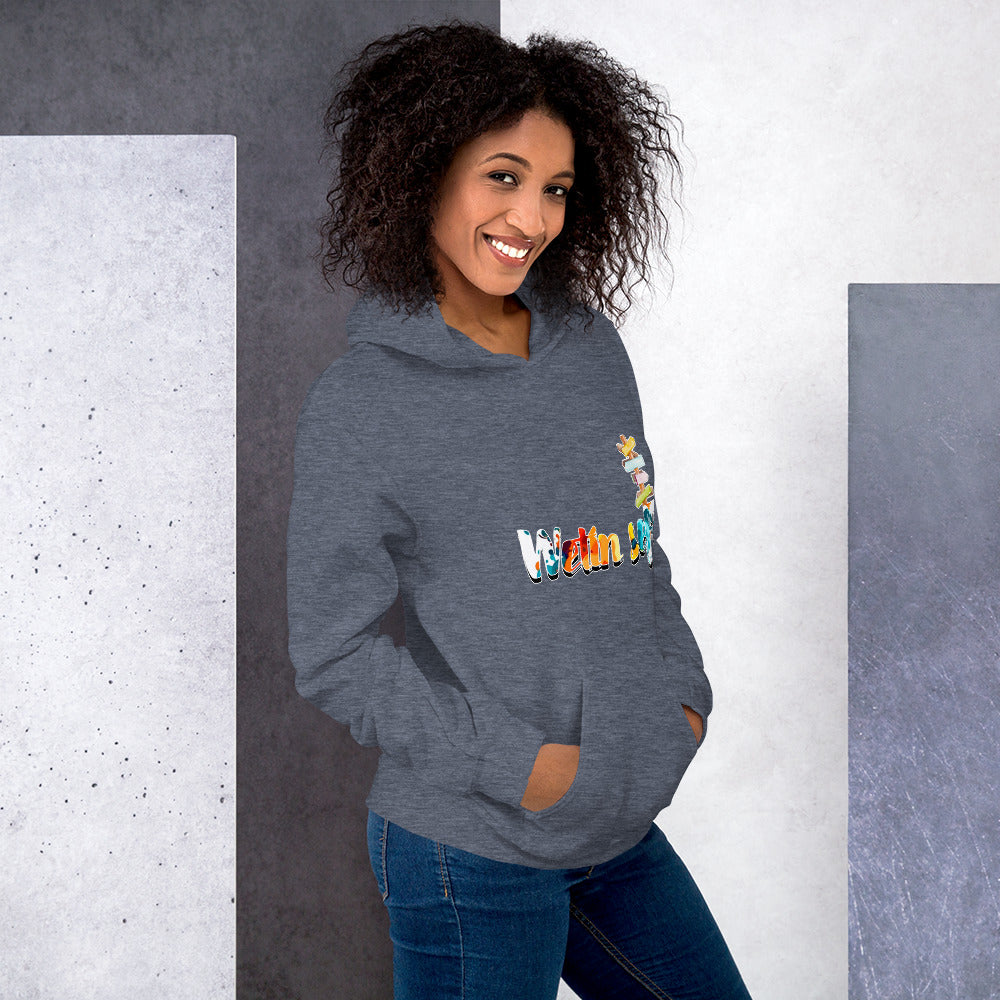 Throw on this hoodie when things are wild, confusing, or just too much in the best way. This piece brings the question with style: comfortable, bold, and unmissable.